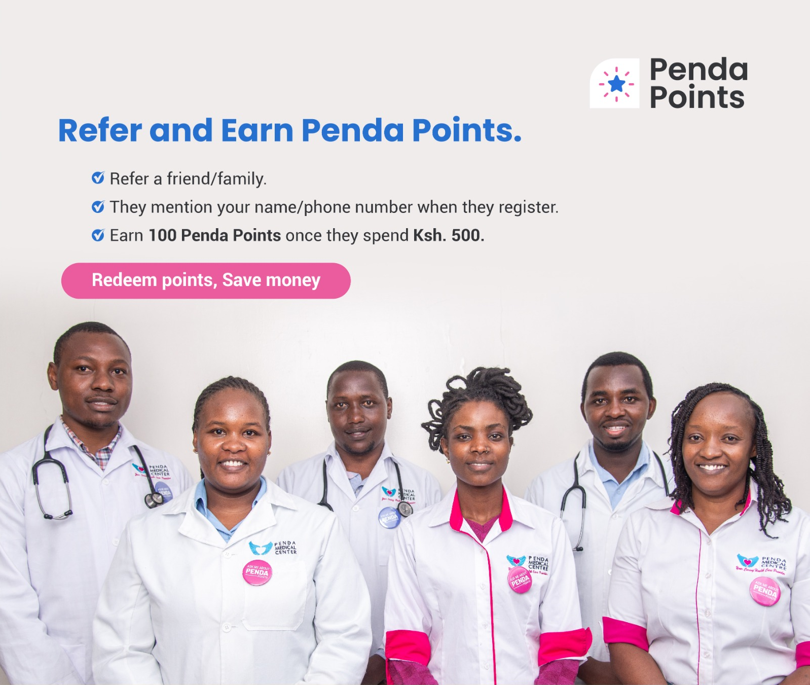 A: The Penda Points Referral Program is an exciting initiative that rewards you, our valued patient, for referring new patients to Penda Health. Both you (the referrer) and the new patient you refer will earn Penda Points!